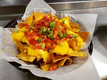 Warm & Fresh Fried Corn Tortilla Chips smothered with Nacho Cheese Sauce & Shredded Cheddar Cheese blend.
