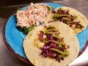 Taco Meat of Choice, Lettuce, Tomato, Black Olive, Jalapeno and sides of Sour Cream & Salsa.